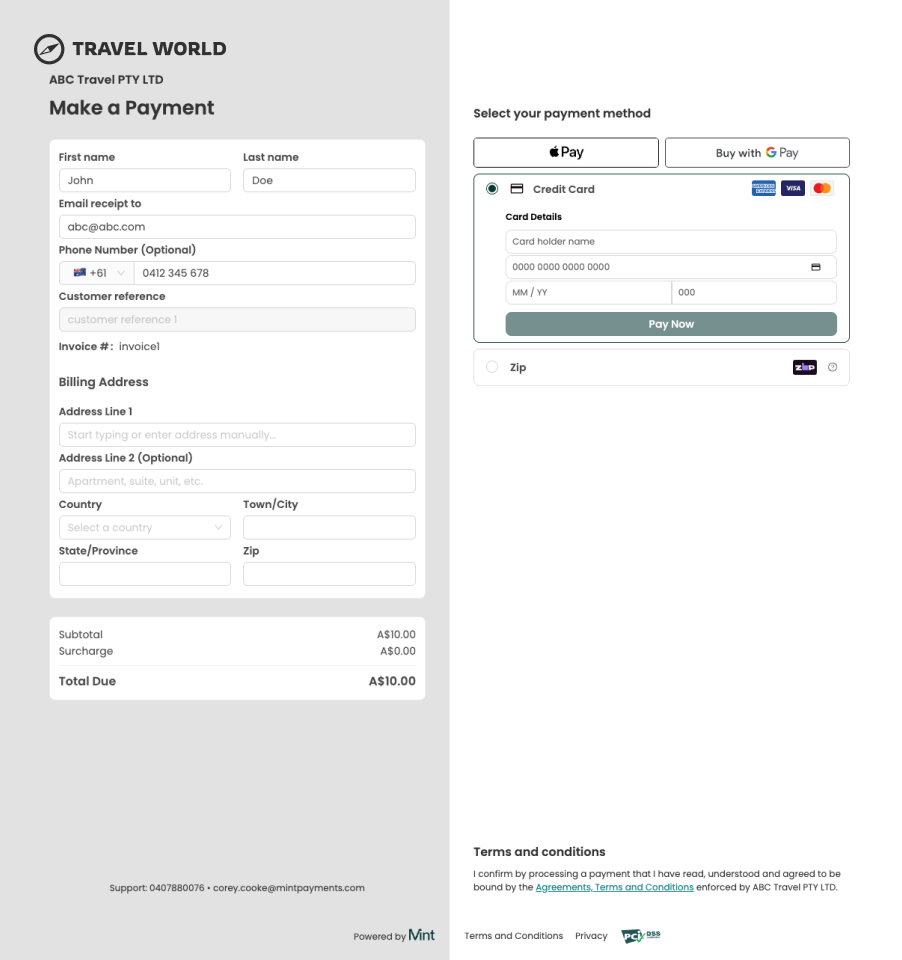 Below is an example of Mint's Hosted Payment Page showing the customer experience: